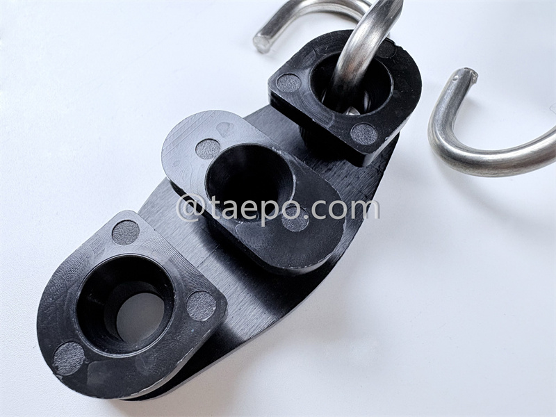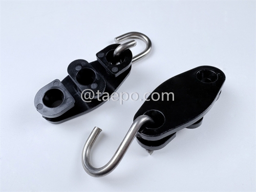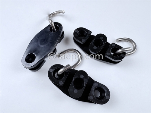 This Bracket Hook (TP-3137) is designed for securing and suspending flat drop cables in fiber optic access networks, especially in FTTH (Fiber to the Home) applications. Its hybrid construction combines the flexibility and insulating properties of high-grade nylon with the strength and corrosion resistance of stainless steel (SS201), offering a durable and stable solution for outdoor or indoor wall-mount installations.